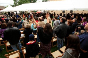 The Sunday worship services were held outdoors under a big white tent, just like SOZO Festival. The Worship Leader for this weekend was Rob Frazier. It just so happened on the set list this day was my song A New Anointing \This Is The Day.Â